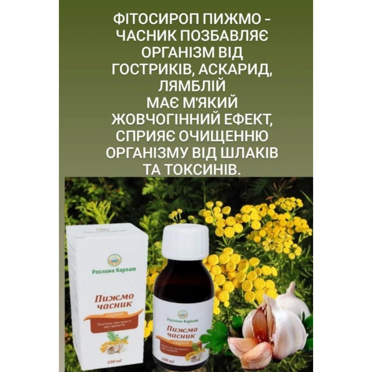 Сироп Піжмо-Чесня — фітосредість для профілактики та лікування глистових інвазій.