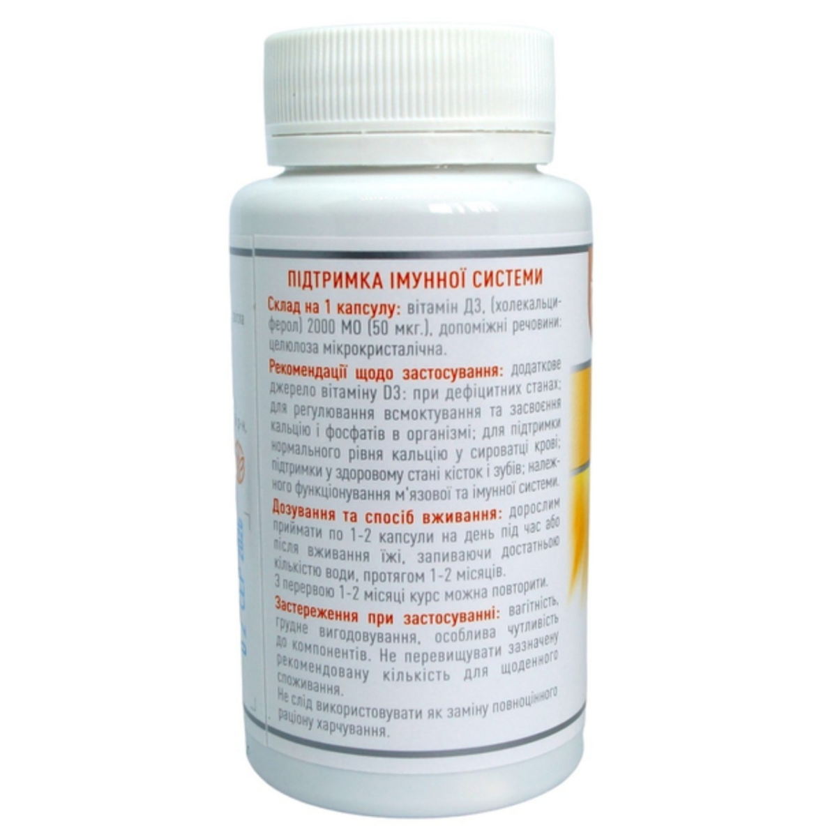 вітамін Д3, (холекальциферол) 2000 МО(50мкг.) допоміжні речовини: целюлоза мікрокристалічна. |